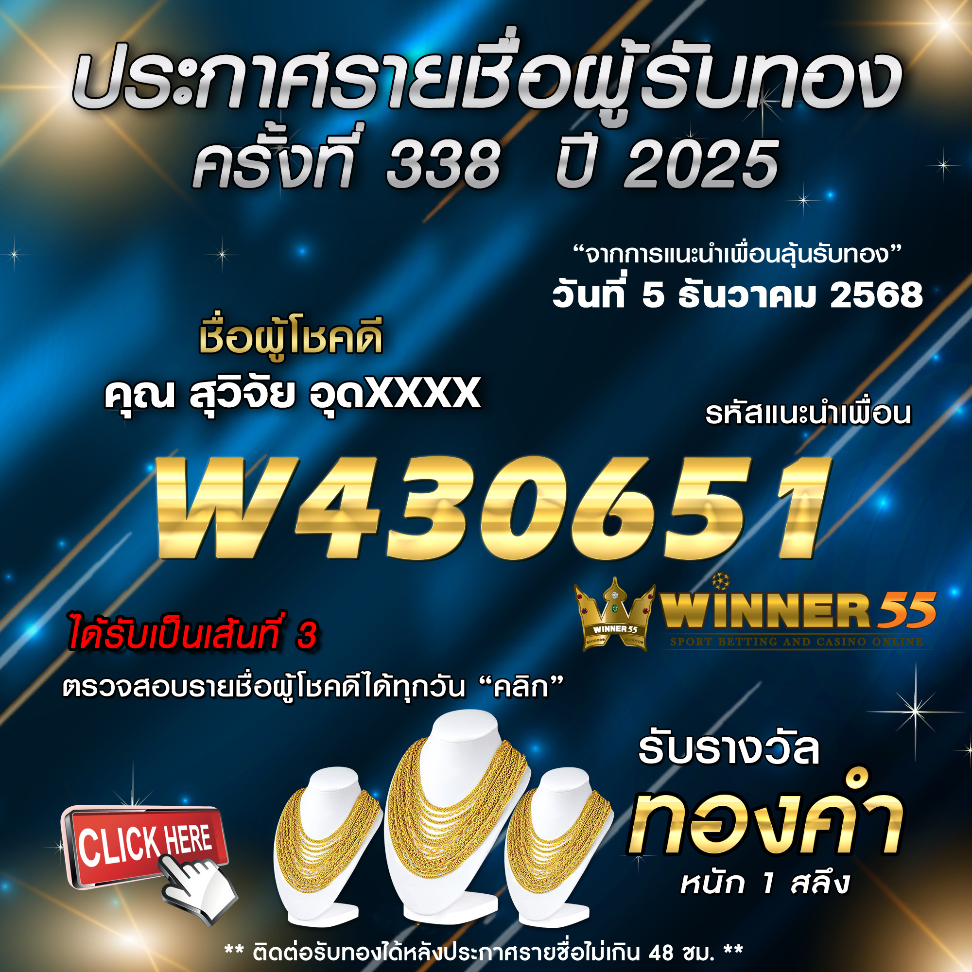 ประกาศรายชื่อผู้โชคดี ได้รับโบนัส กิจกรรมฝากเงินลุ้นโบัส "ต้อนรับฤดูกาล 2025 "